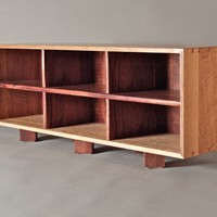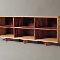 A contemporary cabinet constructed of quarter sawn white oak and African Mahogany. Handcut dovetails accent the simple lines of the cabinet.